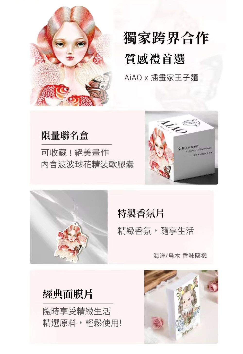 AiAO × 王子麵 限量聯名|保養禮盒組 玻尿酸軟膠囊 + 保濕面膜 + 香氛片