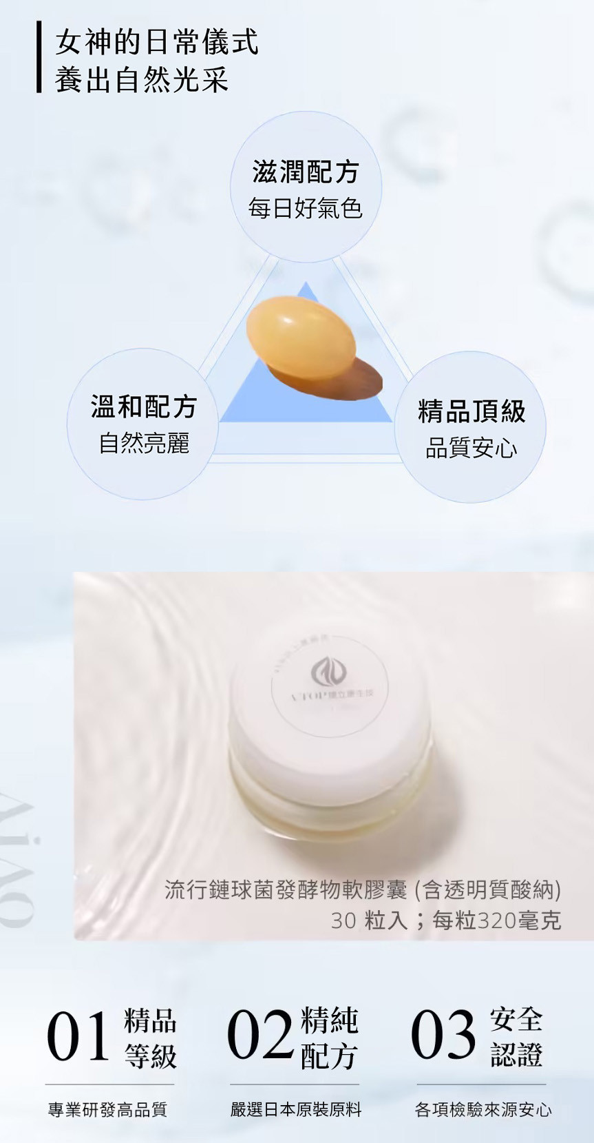✔ 嚴選玻尿酸:每粒60mg Hyabest玻尿酸